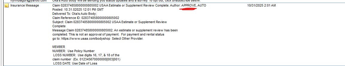 To check if USAA approved the Estimate or Suppliment, go to the Notes tab and look for something like this from Insurance, where it says Approve.